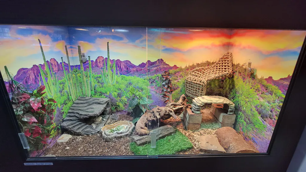 - (1) Destinations Reptile Enclosure Background. (Sizes Varies) Exhibit quality artwork sure to wow your most discerning guests! Includes Back Panel Only, unless you select the Wrap Around side panel option.* These are cut 1" smaller in each direction for a perfect fit inside your Toad Ranch enclosure.